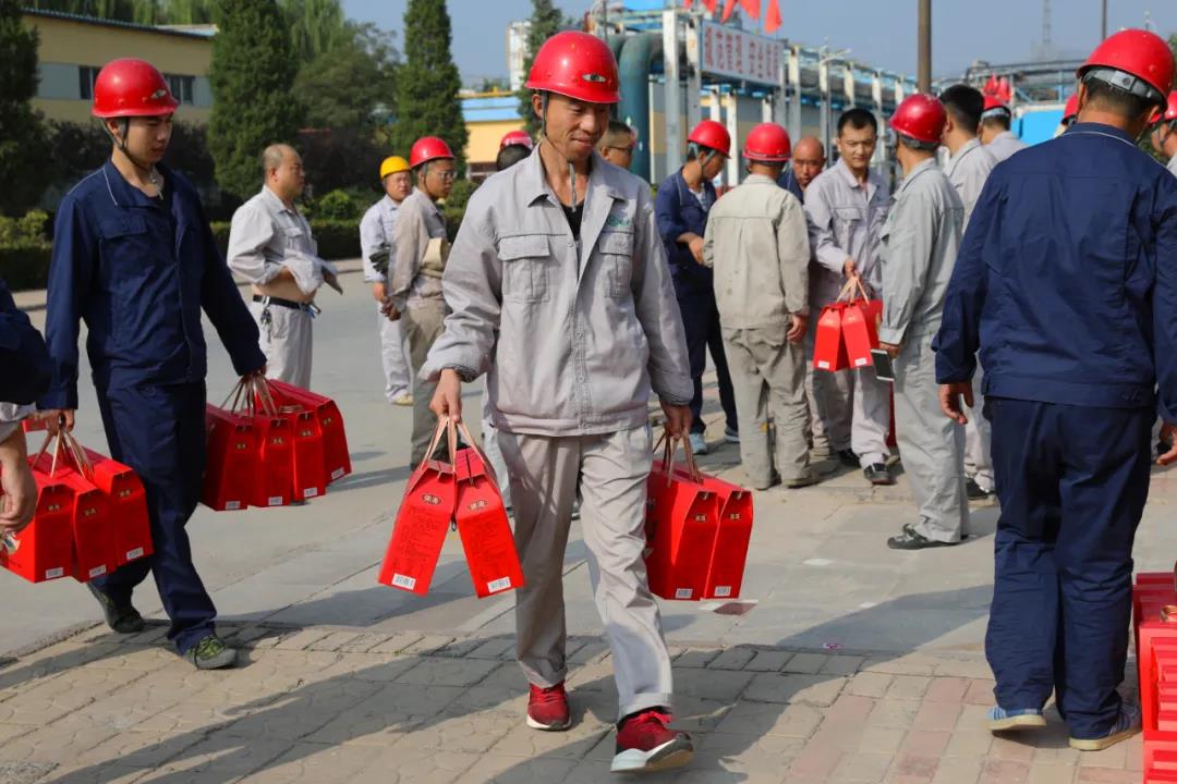 一份中秋礼品代表着美好祝愿,传递着对员工浓浓的关爱。员工脸上洋溢的幸福笑容是奋斗者最大的成果,是榆化发展最好的业绩。新时代,新征程,榆化人将用勤劳的双手开创更加美好的百年榆化新篇章,收获更大的幸福!