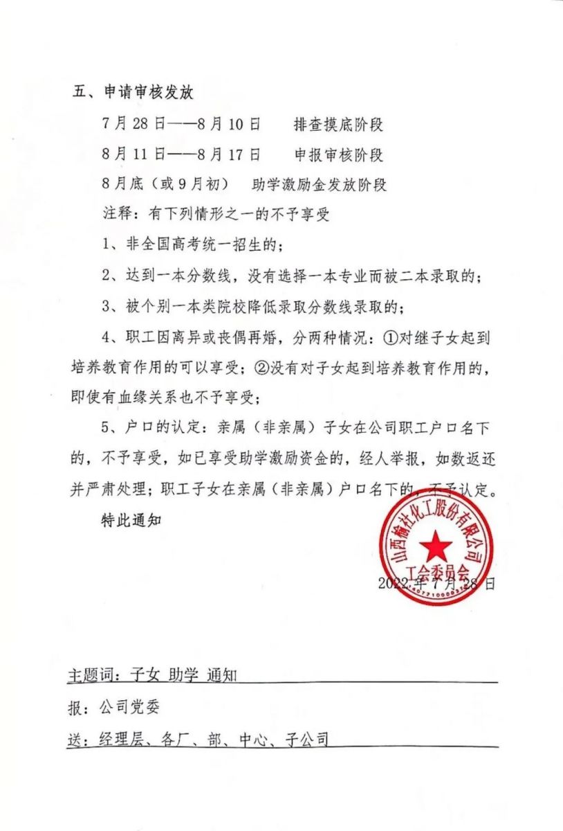 7月28日,随着高考录取通知书陆续送达考生手中,公司2022年度职工子女助学激励活动再度开启。一直以来,公司始终秉承“为员工服务”的宗旨,紧密围绕“三个放在心上”重要战略思想,积极践行企业担当,助学激励就是公司心系员工、扎扎实实为员工办实事的一项重要民生举措。