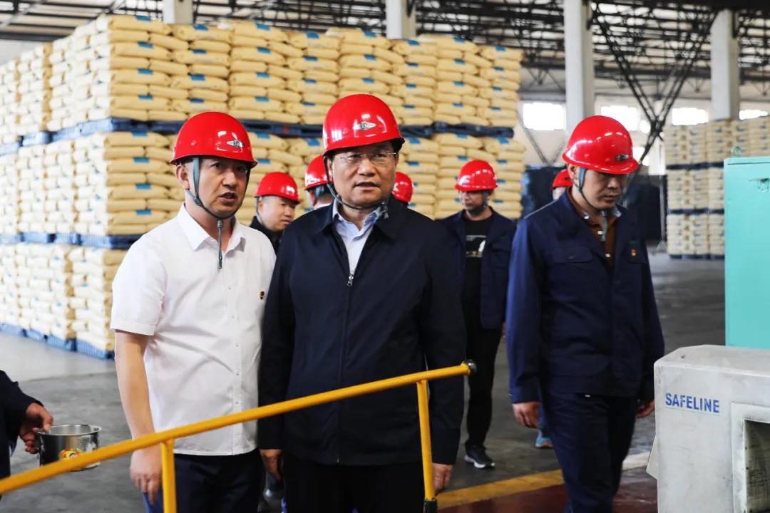 9月30日,县委书记郭建雄,副县长武春林、温德伟一行到我公司参观调研。公司董事长刘俊、总经理陈波、人力资源总监陈绪明、副总经理任开宇、监事会副主任迟占锋陪同。
